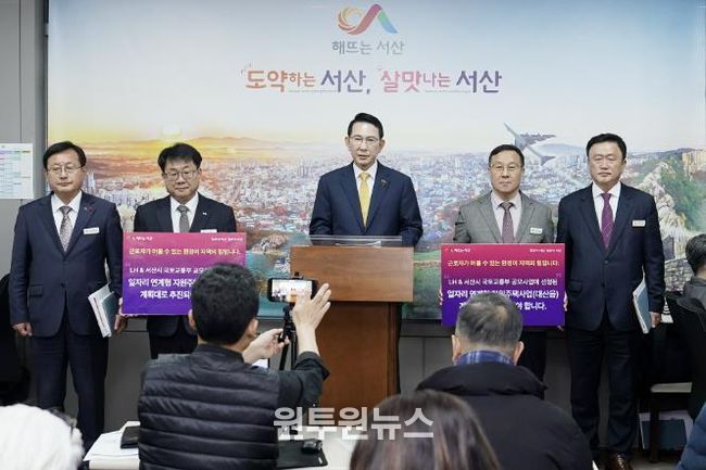(원투원뉴스) 이완섭 서산시장이 29일 “일자리연계형 지원주택사업의 공동사업 시행자인 LH가 부당한 사업 포기를 중단하고 책임 있는 공기업으로서 사업에 참여해야 한다”라고 강력히 촉구했다.