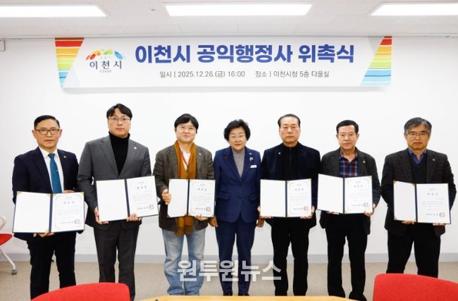 (원투원뉴스) 이천시는 복잡한 행정 절차로 어려움을 겪는 시민들을 돕기 위해 공익 행정사를 위촉하고 지난 26일, 이천시청 5층 다올실에서 ‘제1기 공익행정사 위촉식’을 개최했다.