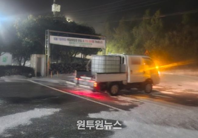제설 구간은 색달매립장 입구에서 침출수 처리동, 남부광역소각장 입구에서 산록도로 교차로까지다. 당직근무자는 진입로 상황을 순찰하고 보고서를 작성해 부서 단체방에 공유하며 필요 시 협조 요청을 통해 신속히 대응할 방침이다.