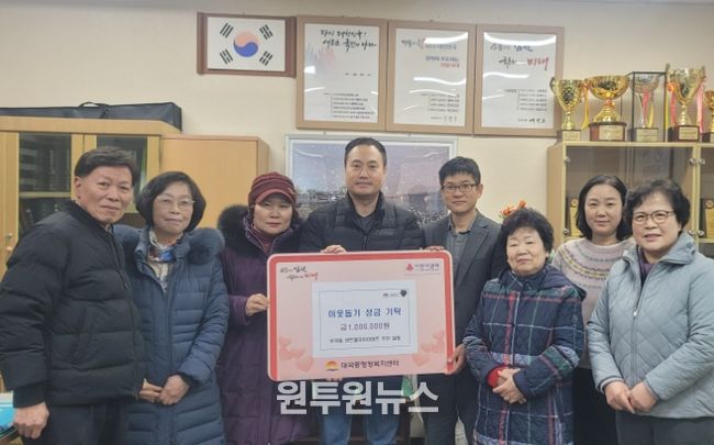 (원투원뉴스) 김천시 대곡동에서는 지난 12월 26일, 김천센트럴자이아파트가 지역 내 어려운 이웃을 돕기 위해 후원금 100만 원을 기탁했다고 밝혔다.