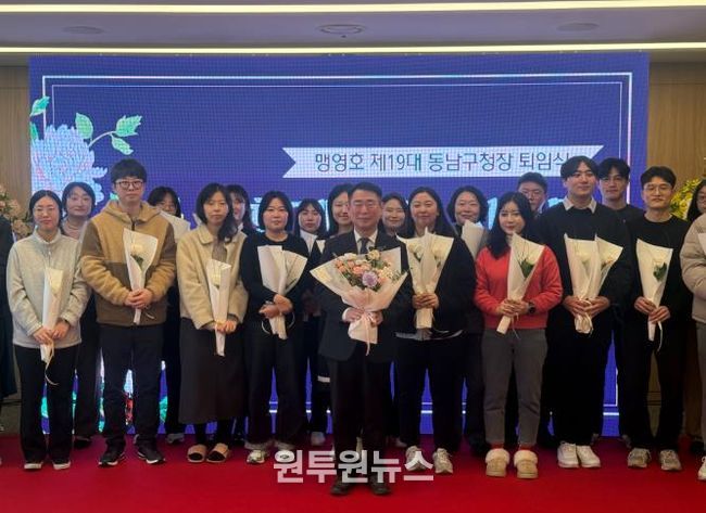 맹 구청장은 29일 동남구청에서 열린 퇴임식에서 “반성도 있지만 35년간 열심히 해왔다고 자부한다”고 소회를 밝혔다.