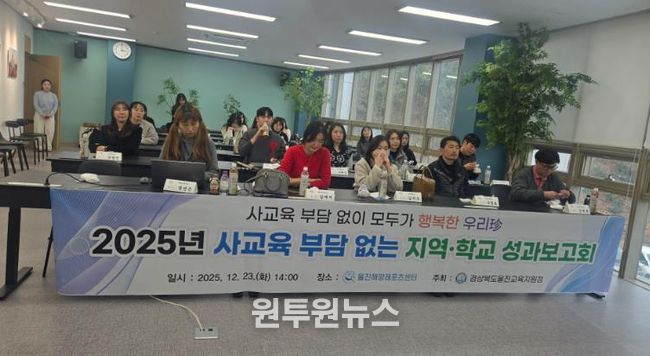 (원투원뉴스) 울진교육지원청은 2025년 12월 23일 14시, 울진해양레포츠센터에서 '2025 사교육 부담 없는 지역·학교 사업 운영 성과보고회'를 개최했다.