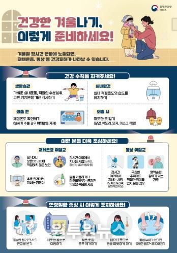 또 모자와 목도리, 장갑, 마스크 등을 착용해 신체 노출을 최소화하고, 실내에서도 난방이 충분하지 않을 경우 보온에 각별히 신경 써야 한다고 강조했다.