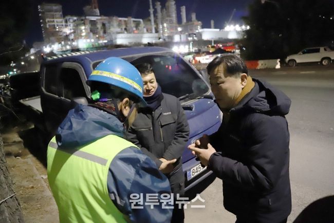 (원투원뉴스) 김종훈 동구청장은 12월 29일 오전 4시 30분 울주군 에스오일 샤힌 프로젝트 건설 현장을 찾아, 동구에서 울주군으로 출퇴근하는 지역 노동자의 고충을 들었다.