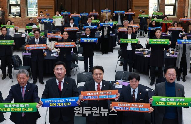 이날 환영 보고대회는 2025년 한해를 돌아보며, 지난 11월 충청권 광역급행철도 사업의 민자적격성조사 통과를 기념함과 동시에, CTX 사업 추진 과정의 성과를 함께 공유하고 향후 사업이 안정적으로 추진될 수 있도록 도민과 민간단체, 관계기관 간 공감대를 형성하기 위해 마련됐다.