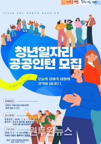 (원투원뉴스) 이천시는 2026년 1월 5일부터 1월 16일까지 ‘청년일자리 공공인턴사업’의 상반기 참여자 47명을 모집한다.