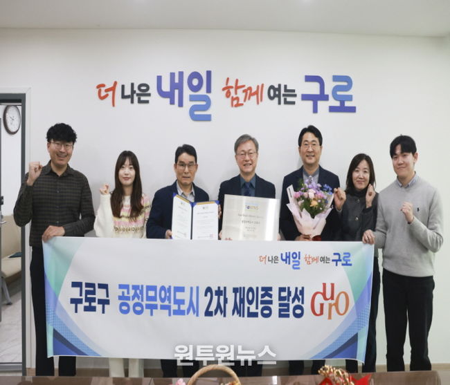 (원투원뉴스) 구로구가 공정무역 실천 도시로서의 위상을 다시 한번 입증했다. 구는 12월 27일 사단법인 한국공정무역마을위원회로부터 ‘공정무역도시’ 2차 재인증을 획득했다.