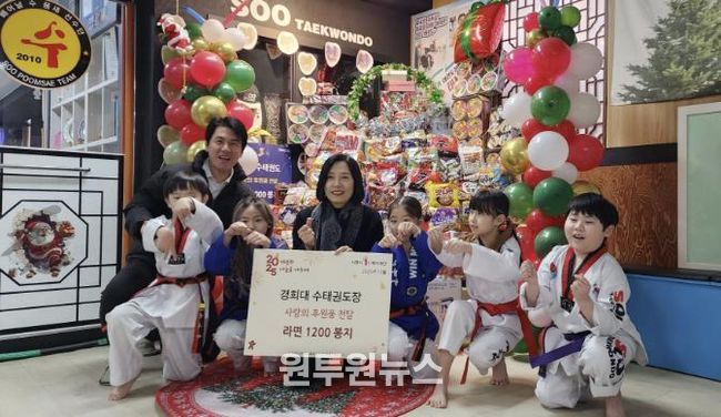 경희대수태권도장은 매년 연말 ‘우리의 라면이 사랑이라면’이라는 주제로 꾸준한 기부 활동을 이어오고 있으며, 올해 역시 원생들이 직접 작성한 따뜻한 응원 메시지를 라면과 함께 전달했다.