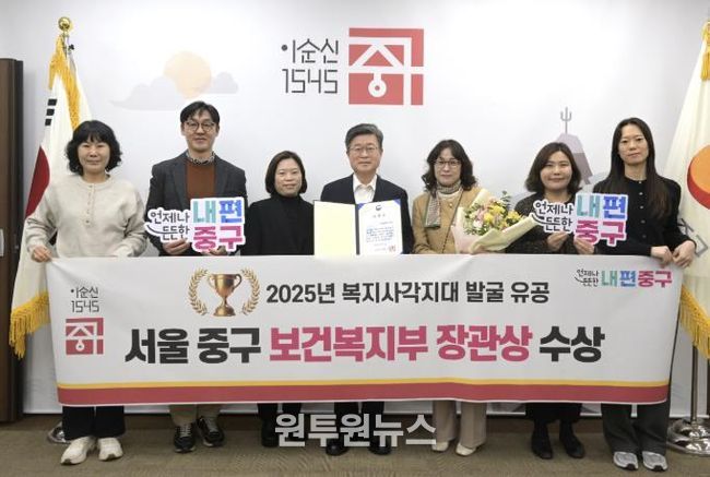 (원투원뉴스) 서울 중구가 보건복지부 주관 ‘2025년 사회보장정보시스템 구축 및 운영평가’에서 ‘복지사각지대 발굴 분야’ 우수기관으로 선정돼 보건복지부 장관상을 수상했다.