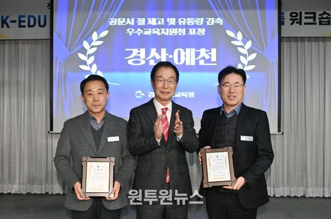 (원투원뉴스) 경북교육청은 2025년 학교로 발송하는 공문서의 유통량 감축과 질적 개선에 이바지한 우수교육지원청으로 경산교육지원청과 예천교육지원청을 선정하고 교육감 표창을 수여했다고 30일 밝혔다.
