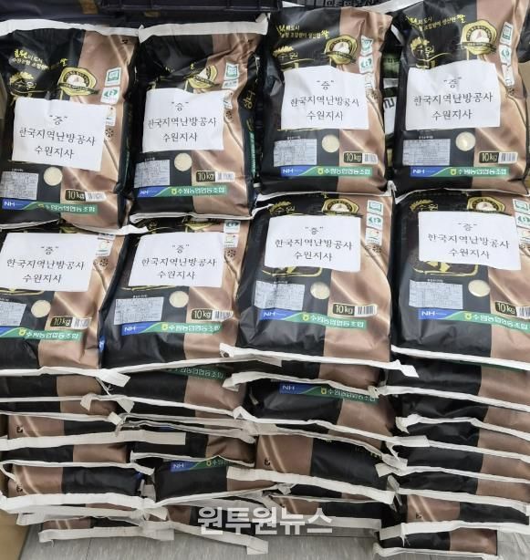 (원투원뉴스) 지난 29일 한국지역난방공사 수원지사는 지역사회 어르신들을 위한 나눔 활동의 일환으로 광교1동 21개소 경로당에 쌀 42포를 기부했다.