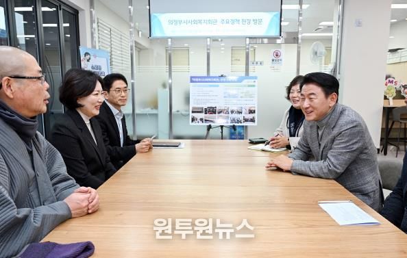 (원투원뉴스) 의정부시는 12월 29일 지역 복지 현장에서 협력과 소통의 중심 역할을 해 온 ‘의정부시사회복지회관’을 방문해 공간 운영 현황을 점검했다. 이번 방문은 회관 2층 유휴공간을 리모델링해 ‘모두의강당’을 조성함에 따라, 확장된 공간이 지역 복지 현장에서 수행할 역할과 운영 방향을 살펴보기 위해 마련했다.