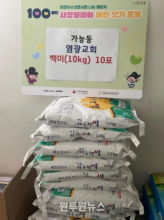 (원투원뉴스) 의정부시 가능동주민센터는 12월 26일 의정부 염광교회가 연말을 맞아 백미 10포(10kg 단위)를 기탁하며 ‘100일간 사랑릴레이 배턴 잇기’에 동참했다고 밝혔다.