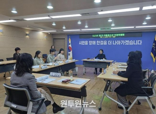 (원투원뉴스) 부천시는 지난 29일 부천시청 나눔실에서 ‘2025년 제2차 부천시 아동·청소년 인권위원회’를 열고, ‘아동·청소년 인권보장 기본계획안(2026~2030)’을 심의했다. 이번 회의는 아동·청소년이 직접 참여해 실질적 의견을 나누는 기회로 마련됐다.