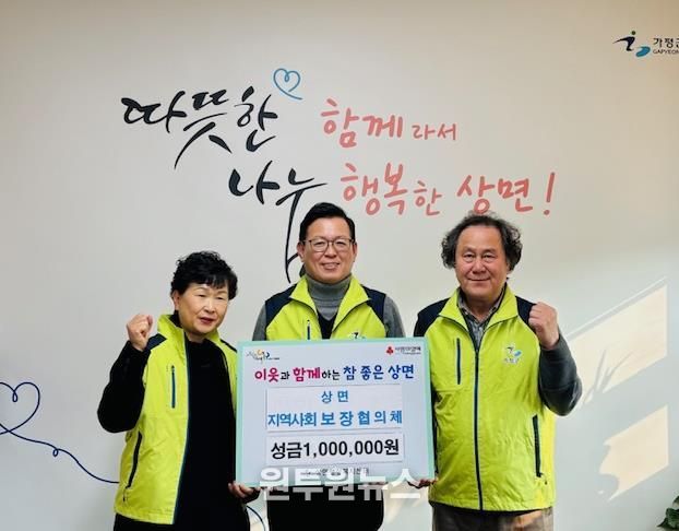 (원투원뉴스) 가평군 상면 지역사회보장협의체(지사협)는 29일 회원들이 자발적으로 모은 회비 100만원을 상면 행정복지센터에 기탁했다.