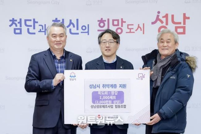 (원투원뉴스) 성남시는 성남섬유제조사업 협동조합이 지역 취약계층을 위해 2000만원 상당의 방한용품을 기탁했다고 30일 밝혔다.