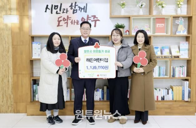 (원투원뉴스) 해든어린이집이 지난 26일 양주시에 이웃돕기 성금 113만 9천 원을 기탁했다.
