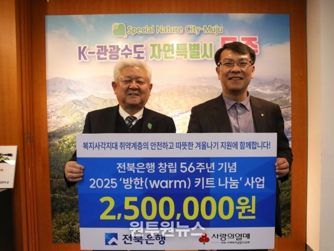 국 지점장은 “전북은행은 지역 대표 은행으로서 무주군민들의 건강하고 행복한 삶을 응원한다”라며 “방한 키트가 지역 내 어려운 이웃들에게 잘 전달되길 바란다”라고 말했다.