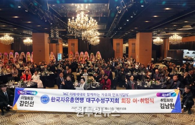 (원투원뉴스) 한국자유총연맹 대구수성구지회는 지난 29일 호텔 라온제나에서 ‘한국자유총연맹 대구수성구지회 회장 이취임식’을 개최했다.