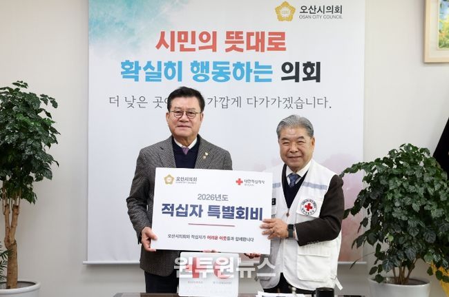 이 회장은 또 “오산은 나눔이 일회성에 그치지 않고 생활 속 실천으로 이어지는 도시”라며 “적십자 활동에 보내주신 오산시의회와 오산시민들의 마음에 깊이 감사드리며 적십자도 그 신뢰에 보답할 수 있도록 도움이 필요한 이웃에게 실제로 힘이 되는 활동을 이어가겠다”고 말했다.