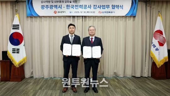 (원투원뉴스) 한국전력 감사실은 12월 30일 ‘광주광역시 감사위원회’과 감사 전문성 제고와 내부통제 강화를 위한 업무협약(MOU)을 체결했다.