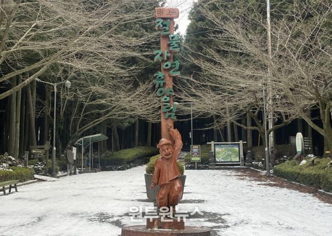 절물자연휴양림은 겨울마다 삼나무 숲 위로 내려앉은 설경과 고요한 산림 경관이 어우러져 겨울 정취를 만끽하려는 시민과 관광객들의 발길이 이어지고 있다.