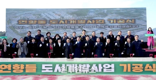 (원투원뉴스) 전라남도와 순천시는 30일 순천 연향동 일원에서 ‘순천 연향들지구 도시개발사업 기공식’을 개최하고 동부권 지역 균형발전과 명품 정주공간 조성을 위한 사업을 본격 추진에 나섰다고 밝혔다.