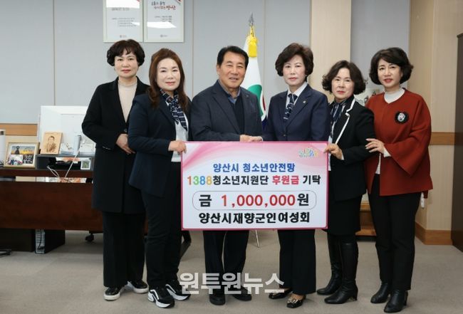 (원투원뉴스) 양산시 재향군인여성회(회장 전정애)는 30일 양산시를 방문해 후원금 100만 원을 양산시청소년상담복지센터 1388청소년지원단에 기탁했다.
