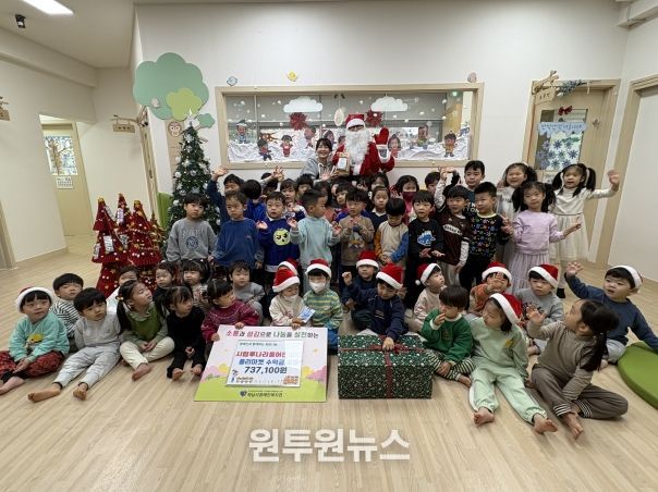 (원투원뉴스) 지난 12월 24일, 하남시 소재 시립루나리움어린이집(원장 김연정)은 학부모와 원생들이 함께 참여한 ‘아나바다’ 바자회 운영을 통해 마련한 수익금 737,000원을 하남시장애인복지관에 전달하며 지역 장애어린이를 위한 따뜻한 나눔을 실천했다.