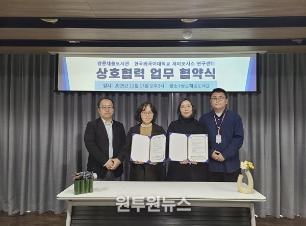 (원투원뉴스) 서울 도봉구 쌍문채움도서관이 지난 12월 17일 한국외국어대학교 세미오시스연구센터와 지역주민의 인문 소양 증진과 인문학 네트워크 강화를 위한 업무협약을 체결했다.