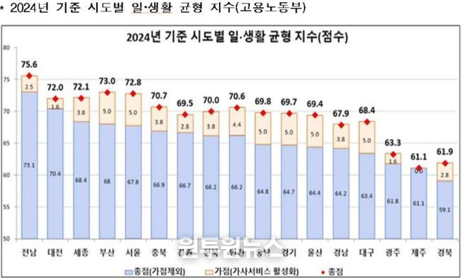 2024년 일·생활 균형지수 평가 결과, 전국 17개 시·도 평균은 65.7점이며 전남은 이보다 7.4점 높았은 점수를 기록했다.