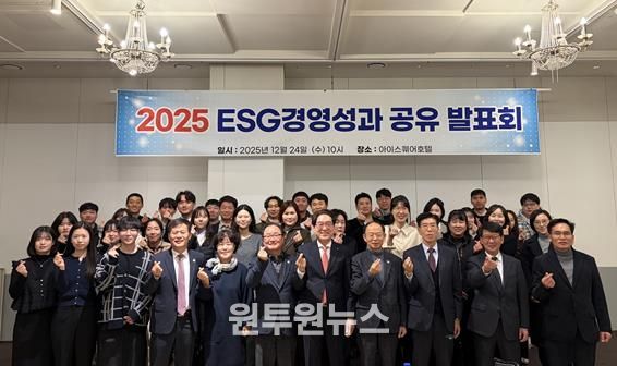 (원투원뉴스) 김해시도시개발공사는 지난 24일 김해 아이스퀘어호텔에서 시민과 지역사회, 내·외부 이해관계자 50여 명이 참석한 가운데 ‘2025년 ESG 경영성과 공유 발표회’를 성황리에 개최했다고 밝혔다.