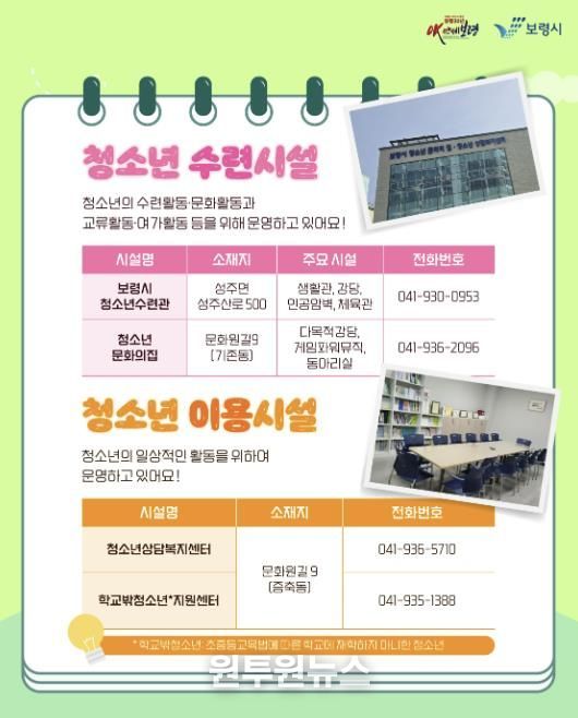 (원투원뉴스) 보령시는 청소년들의 건강한 성장과 청년들의 창업 및 활동 지원을 위해 청소년 시설 2개소, 청년 시설 2개소 등 총 4개소의 전용 시설을 운영하고 있다.