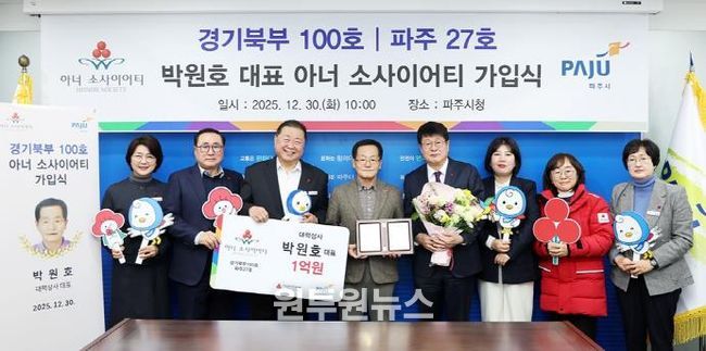 이날 가입식에는 김경일 파주시장을 비롯해 권인욱 경기사회복지공동모금회 회장과 관계자들이 참석했고, 지역 대표로 정해면 ‘아너 소사이어티’회원이 참석했다.
