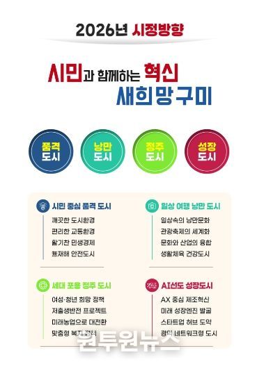 이러한 성과들이 시민이 일상에서 체감할 수 있도록 ①시민중심 체감행정 ②일상여행 낭만도시 ③따뜻한 정주도시 ④AI선도 성장도시를 4대 핵심과제로 삼고, 시민의 삶의 질을 높이기 위한 대전환에 박차를 가할 방침이다.