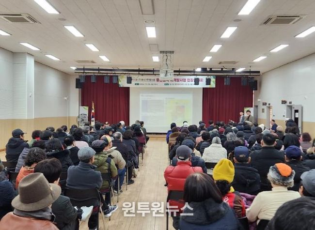 이번 설명회는 ‘도시 및 주거환경정비법’에 따라 정비구역 지정 후 토지소유자 등이 조합 설립을 추진 중인 단계의 구역으로, 지역 주민 130여 명이 모여 전반적인 추진 현황을 공유했다.