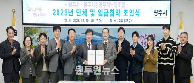 (원투원뉴스) 광주시는 지난 30일 시청 이음홀에서 광주시청 공무직노동조합과 2025년도 단체 및 임금협약을 체결했다.