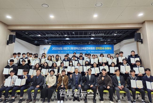 (원투원뉴스) 재단법인 영덕군교육발전위원회는 지난 30일 영덕미래인재양성관에서 2025년도 하반기 장학증서 수여식을 개최했다.