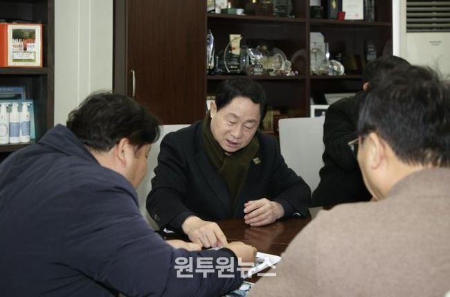 이날 주 시장은 기업 관계자로부터 △제품 소개 △브랜드 소개 △주변 인프라 문제 등을 청취하며 현장 중심의 기업지원 방안에 대해 논의했다.