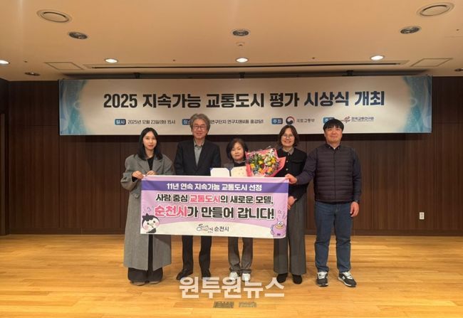 (원투원뉴스) 순천시가 국토교통부 주관 2025년 지속가능 교통도시 평가에서 인구 30만 미만 ~ 10만 이상 ‘라 그룹’ 내 우수 지자체로 선정되며, 11년 연속 우수 평가를 받는 성과를 거뒀다.