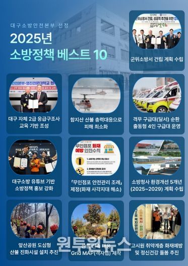 (원투원뉴스) 대구소방안전본부는 2025년 한 해 동안 추진한 주요 소방정책 가운데 현장 대응력 강화와 시민 안전 증진에 기여한 ‘2025 대구소방 소방정책 베스트 10’을 선정해 발표했다.