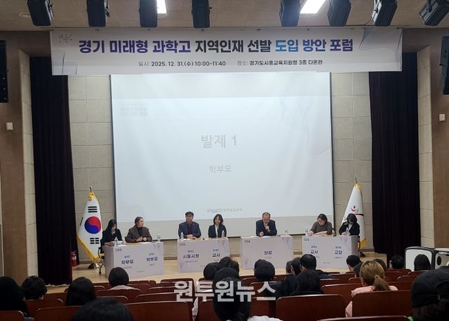 (원투원뉴스) 경기도시흥교육지원청은 2025년 12월 31일 오전 10시에 ‘경기 미래형 과학고 지역인재선발 도입 방안 포럼’의 마지막 의견 수렴회를 개최했다. 이번 포럼은 '경기 미래형 과학고 발전 방안 정책연구'를 기반으로 지역인재선발 도입 방안을 논의하는 자리로, 교직원과 지자체 관계자, 학부모 등이 참석해 열띤 토론을 진행했다.