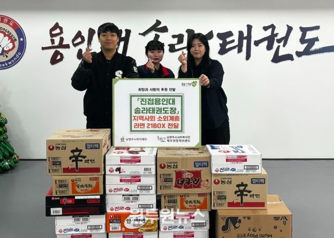(원투원뉴스) 남양주시 지난 29일 진접읍 소재 진접용인대송라태권도장이 라면 21박스를 북부희망케어센터에 전달했다고 30일 밝혔다.