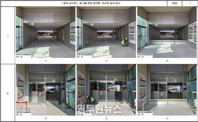 기존 차수판 설치 지원사업(최대 300만원)으로는 설치비를 감당하기 어려웠던 대형 사업장 3곳에는 1000만원을 추가 지원해 차수판 설치를 마쳤다. 이는 재난 재발 방지를 위해 현장의 필요성을 반영해 마련한 지원책이다.
