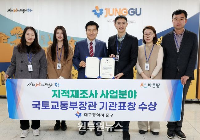 (원투원뉴스) 대구 중구는 ‘2025년도 지적재조사사업 분야’ 추진 유공으로 국토교통부 장관 기관 표창을 받았다.