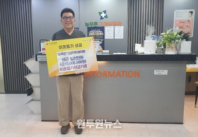 곽정일 늘푸른가정의학과의원 원장은 “지역사회와 함께 성장해 온 의료기관으로서 도움이 필요한 이웃들에게 힘이 되고자 성금을 기탁하게 됐다”며 “앞으로도 지역 주민들과 따뜻한 나눔을 이어가고 싶다”고 말했다.