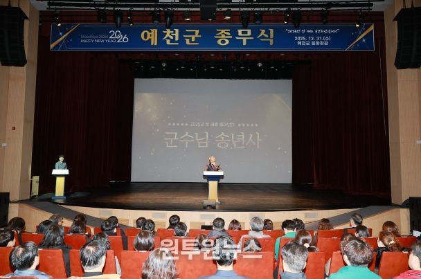 (원투원뉴스) 예천군은 31일 오후 2시 예천문화회관에서 2025년 종무식을 개최하고, 2025년 한 해를 되돌아보며 뜻깊은 마무리의 시간을 가졌다고 밝혔다.