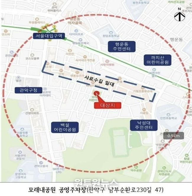(원투원뉴스) 관악구가 오는 5일부터 ‘모래내공원 공영주차장’ 정식 운영을 시작해 구 대표 상권이자 유동인구가 많은 샤로수길 내 주차 공간 부족 문제를 해소한다.
