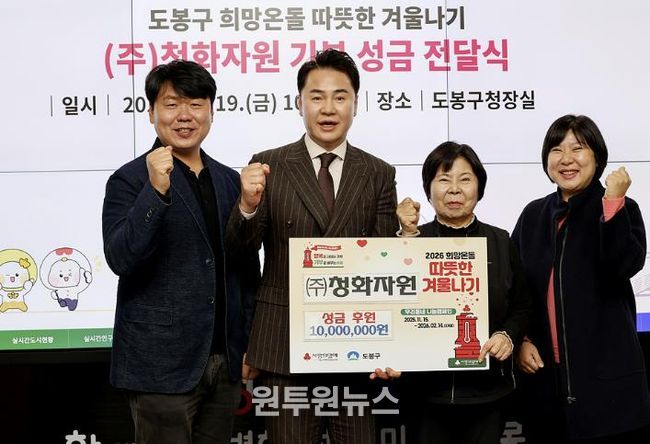 오언석 도봉구청장은 ”어려운 경제 상황에서도 지역 주민을 위해 나눔을 실천해주신 ㈜청화자원에 감사드린다.“라고 전했다.