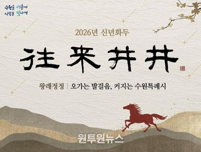 (원투원뉴스) 수원특례시가 ‘왕래정정(往來井井)’을 2026년 신년화두로 정했다. ‘오가는 발걸음, 커지는 수원특례시’라는 의미를 담았다.